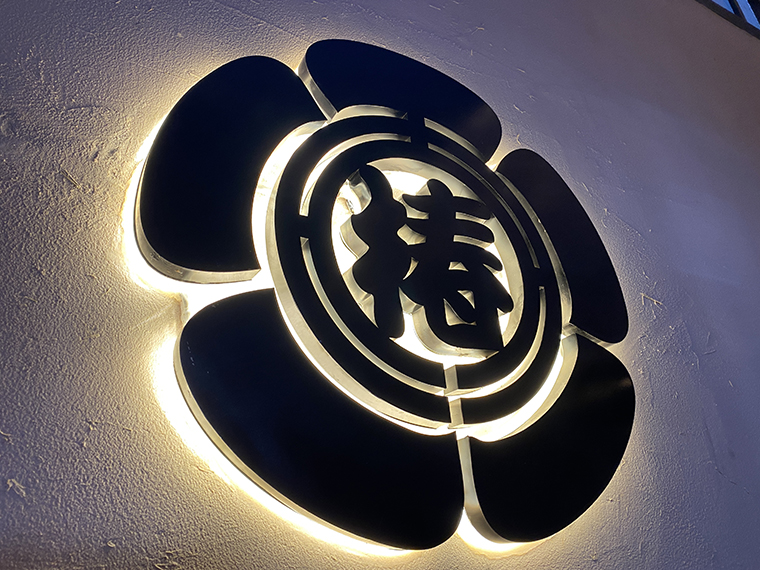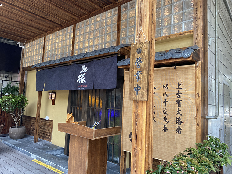 玉椿的門頭,使用京都古建筑的山墻造型,中間裝飾“