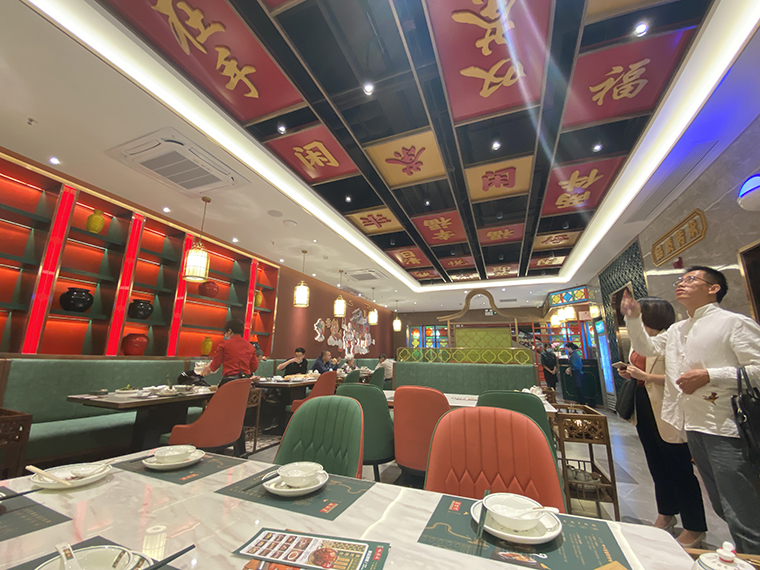 品深餐飲策劃設計的蘩樓,就在空間裝飾中植入了大量的品牌元素,實現了將品牌元素植入到消費者的心智中。
