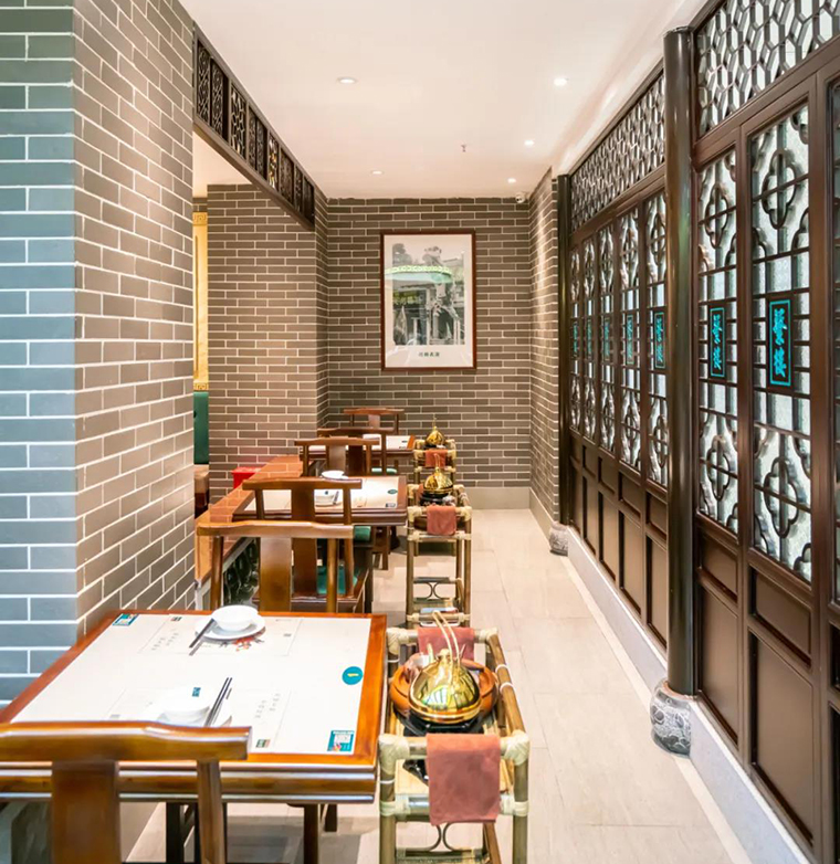 廣式點心茶樓最早可追溯到清朝末年,廣州開放為通商口岸,至清光緒年間,廣州商業的七十二行,酒樓茶室占最大的比重,廣州已成為中國茶室酒樓消費最大的城市,在這期間廣式茶樓也吸收大量外來元素融入并內化,形成獨特的元素和獨有的色彩。如:色彩鮮亮廣式花窗,顏色厚重有歷史感的廣式青磚,將這些有歷史感的色彩融入到茶樓空間裝飾設計中,能很好地給消費者傳達出一種厚重,悠遠的歷史感!